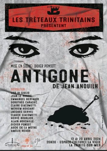 L'incontournable pièce Antigone de Anouilh mise en scène par Didier Ponsot sera de nouveau jouée par 13 acteurs de l'équipe des tréteaux Trinitains .