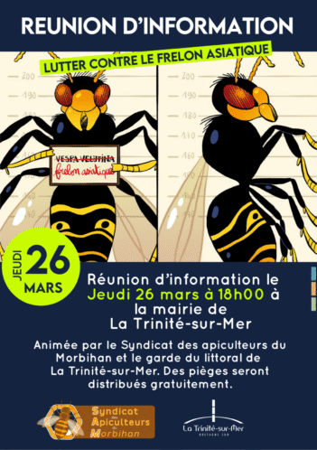 Le Syndicat des apiculteurs du Morbihan et le garde du littoral de la commune organisent une réunion d’information sur le piégeage des frelons asiatiques jeudi 26 mars à 18h à la mairie.