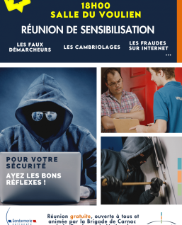 🚔👮🏻♂️ Venez assister à une réunion de sensibilisation animée par la Gendarmerie Nationale pour connaître les comportements à adopter face aux différentes menaces que chacun peut rencontrer : démarchage à…